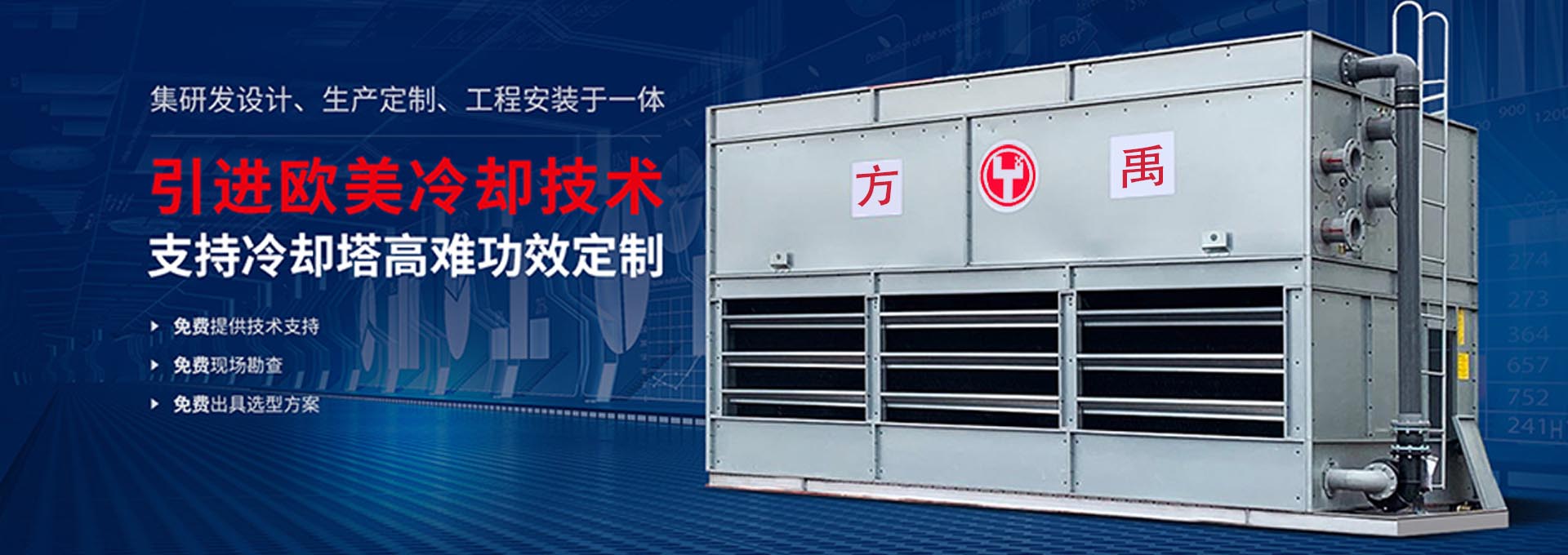 方禹24年專注冷卻塔研發、生產與系統工程安裝服務,引進國外進口生產技術,專注產品創新設計,全面改造冷卻塔內部形式與材質,使其高性能化,